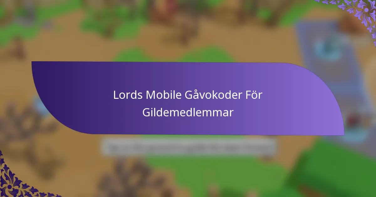 Lords Mobile–gåvokoder för gillemedlemmar är speciella alfanumeriska koder som spelare kan lösa in för olika belöningar i spelet. Dessa koder förbättrar spelupplevelsen genom att tillhandahålla värdefulla resurser och bonusar som kan gynna hela gillena.