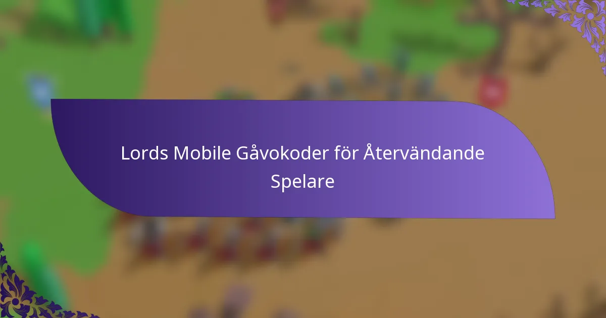 Återvändande spelare kan effektivt återengagera sig i Lords Mobile genom att utnyttja gåvokoder, förstå senaste uppdateringar och använda strategier för att snabbt komma ikapp. Att fokusera på gemenskapsinteraktioner och utnyttja tillgängliga resurser kan förbättra spelupplevelsen och underlätta övergången tillbaka till spelet.